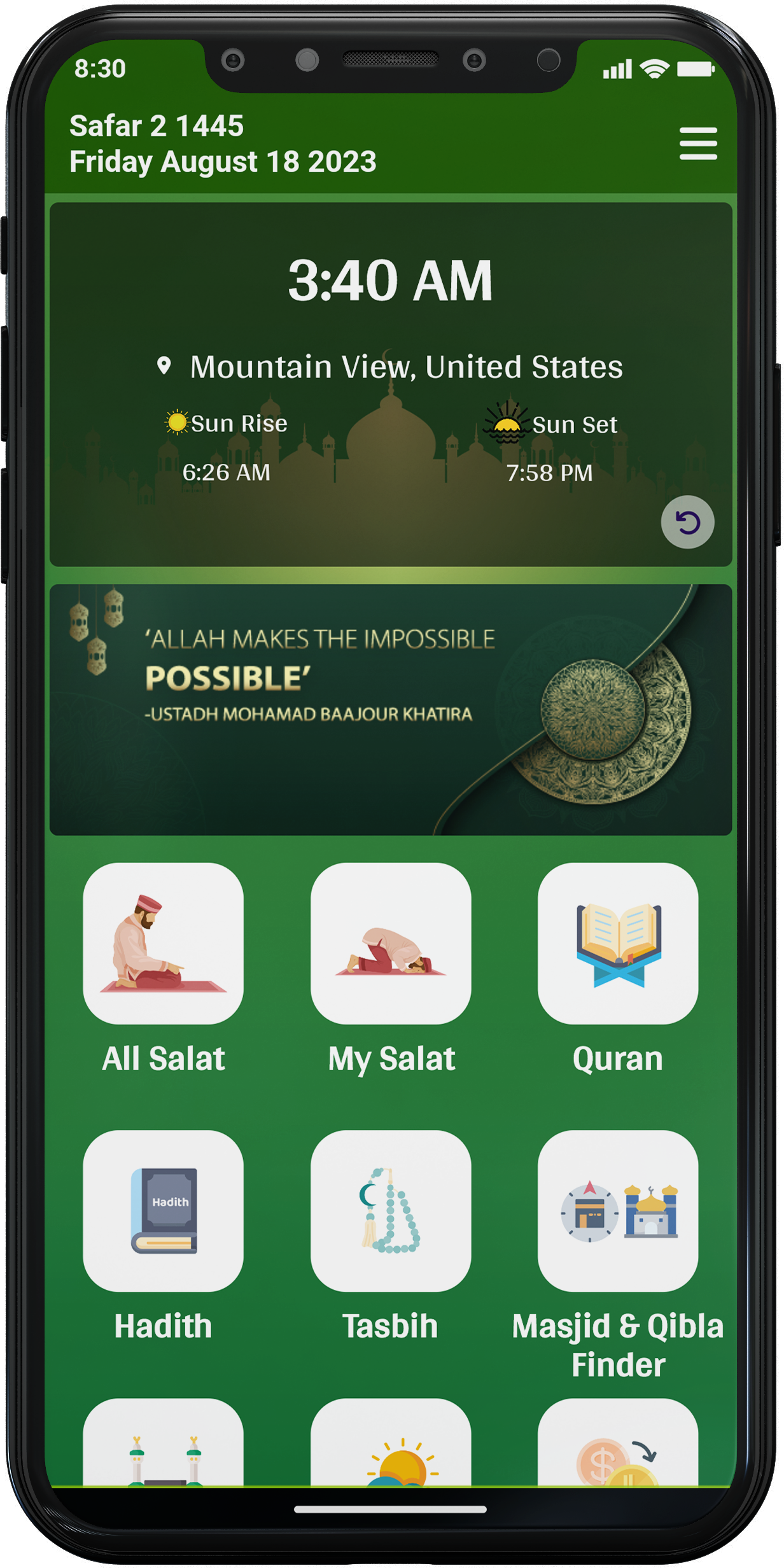 Introducing the Salat App – your essential tool for enhancing your daily prayers. This user-friendly app offers customizable features to keep you committed and engaged in your Salah practice. Seamlessly navigate through "All Salat" and "My Salat" sections for comprehensive prayer insights and personal tracking. Access the Qur'an for spiritual guidance and enlightenment. Stay punctual with accurate "Prayer Time" reminders. Locate nearby mosques effortlessly using the "Masjid Finder" function. And deepen your connection with the "Tasbih" feature. Elevate your prayer experience with the Salat App's holistic approach, fostering discipline and spirituality in every aspect of your routine.